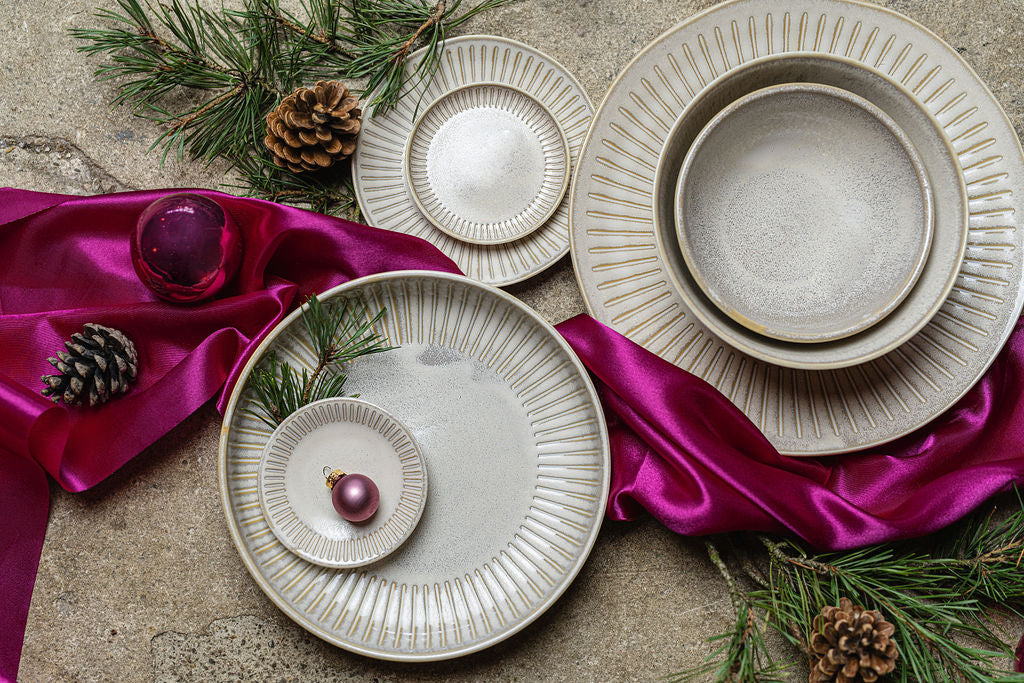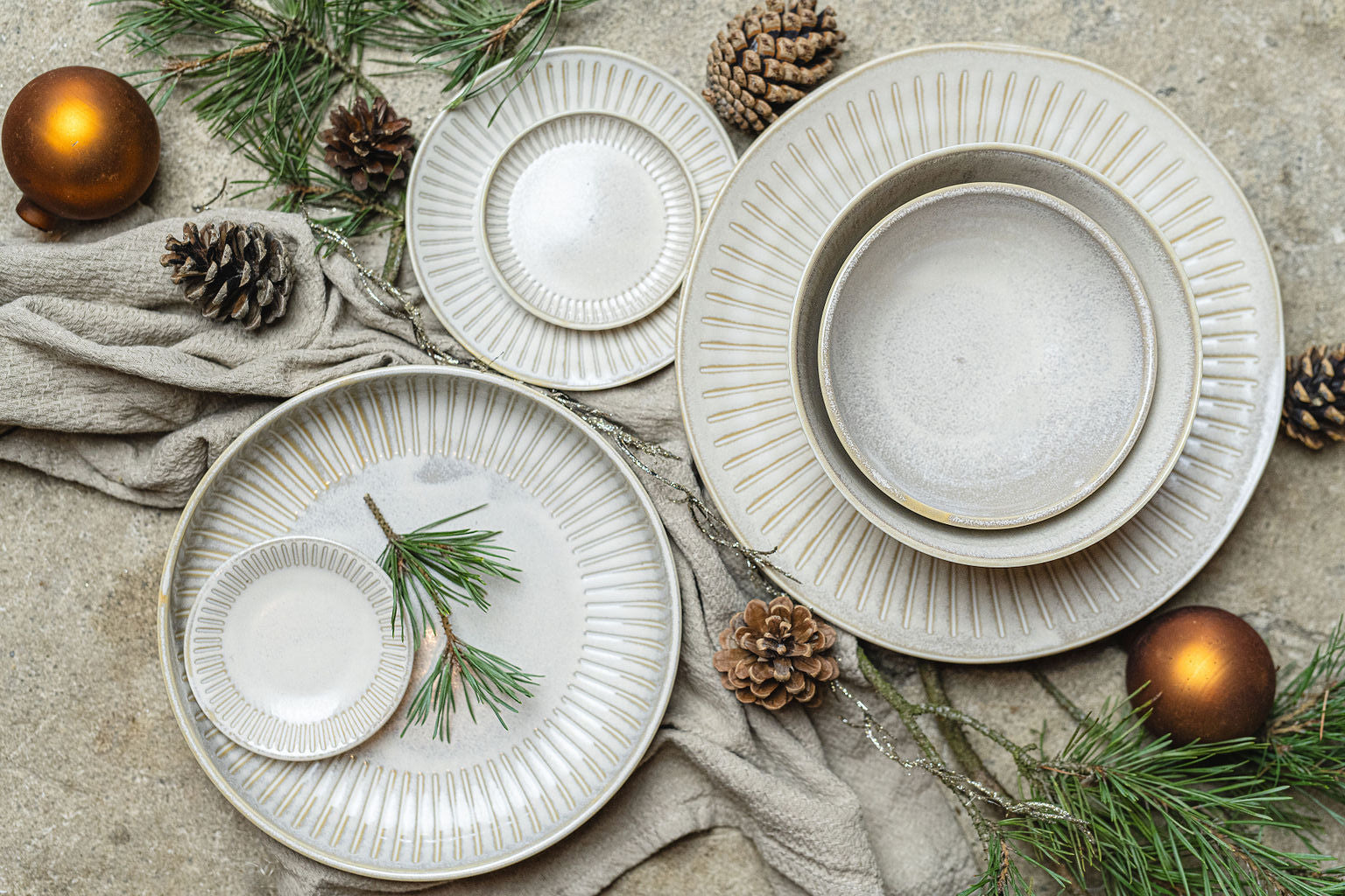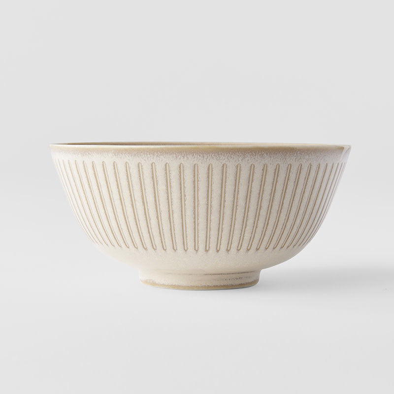 The glaze is a soft, warm ivory with a smooth matte pearl finish. It gently settles into the ridges, adding depth and an organic look.