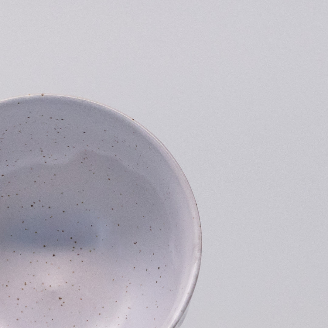 This Speckled White teacup features a warm white glaze, dotted with subtle, natural spots, showcasing the rustic texture of handmade pottery.